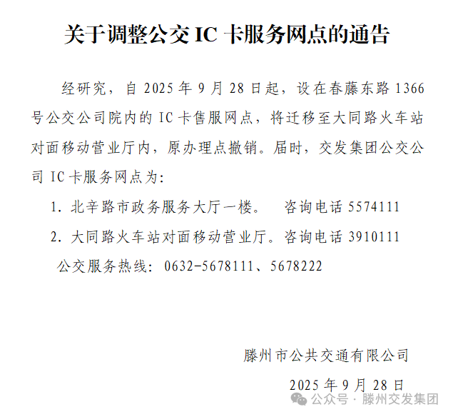 關(guān)于調(diào)整公交IC卡服務(wù)網(wǎng)點的通告