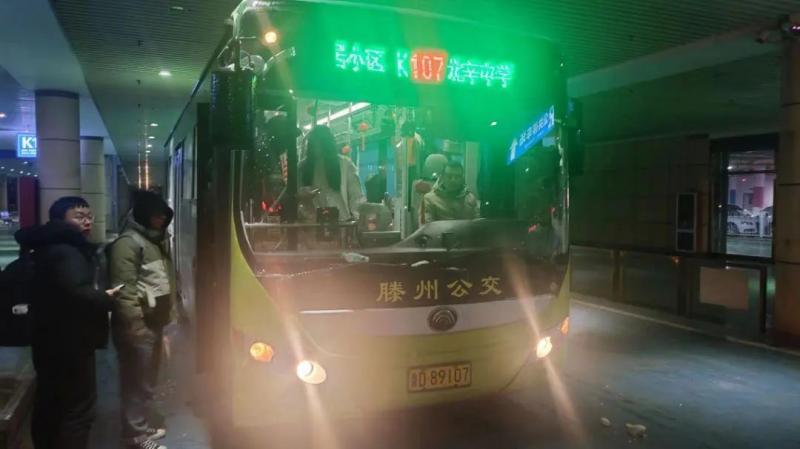 “不論天氣多冷,路再難走,再晚也要讓每個到站旅客回家”。為做好高鐵接駁工作,避免高鐵旅客出現(xiàn)滯留,全力保障旅客安全出行,交發(fā)集團公交二分公司立即啟動應(yīng)急預(yù)案,強化運力組織,二分公司經(jīng)理黨全省帶領(lǐng)管理人員上線全程跟車,逐一對駕駛員進行安全叮囑,協(xié)助駕駛員做好冰雪路面安全駕駛和乘客疏導(dǎo)服務(wù)工作。執(zhí)行應(yīng)急轉(zhuǎn)運任務(wù)的K106、K107路駕駛員以高度的國企責(zé)任擔(dān)當(dāng)意識,堅決服從應(yīng)急運營計劃安排,頂著嚴(yán)寒,努力克服道路結(jié)冰濕滑困難,全身心投入到安全平穩(wěn)駕駛中來,截至到22日凌晨3點30分,終于將最后一班高鐵旅客平穩(wěn)安全的送到市區(qū)終點站。“太感謝你們了,萬萬沒想到凌晨了,還有公交車接我們回家,咱們大滕州的公交真的太給力了!”乘上溫暖的公交車,乘客們激動的說道,紛紛為公交的暖心服務(wù)點贊。